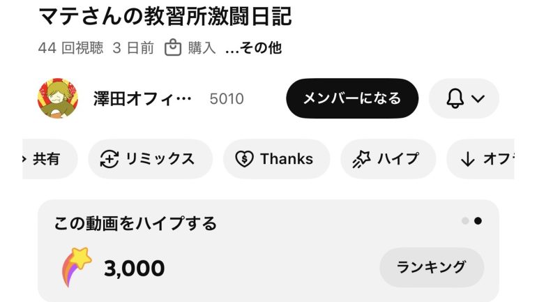面白いのは、登録者数が多いチャンネルの動画はポイントが得られにくい設計になっているという点。たとえば、最近登録者数が5,000人を超えたばかりの筆者のチャンネルの動画では、1回のハイプに3,000ポイントが発生する。これが500人の場合は7,500ポイントになるそうだが、逆に50万人の場合は50ポイントにしかならないという。