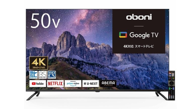 ゲオストアは、GoogleTVを搭載したスマートテレビ「Oboni 4K対応液晶スマートテレビ」を全国のゲオショップ(※)およびゲオオンラインストアにて販売開始した。43V型と50V型をラインナップし、価格は43V型が38,280円、50V型が43,780円。
