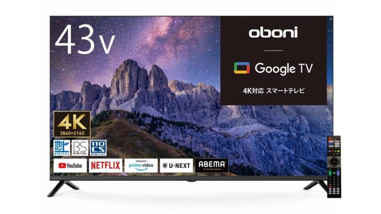 ゲオストアは、GoogleTVを搭載したスマートテレビ「Oboni 4K対応液晶スマートテレビ」を全国のゲオショップ(※)およびゲオオンラインストアにて販売開始した。43V型と50V型をラインナップし、価格は43V型が38,280円、50V型が43,780円。