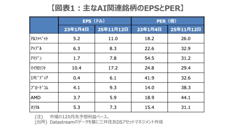 ■AI関連銘柄の株価は一部に割高感があるとの指摘も、総じて良好な業績の見通しを伴っている