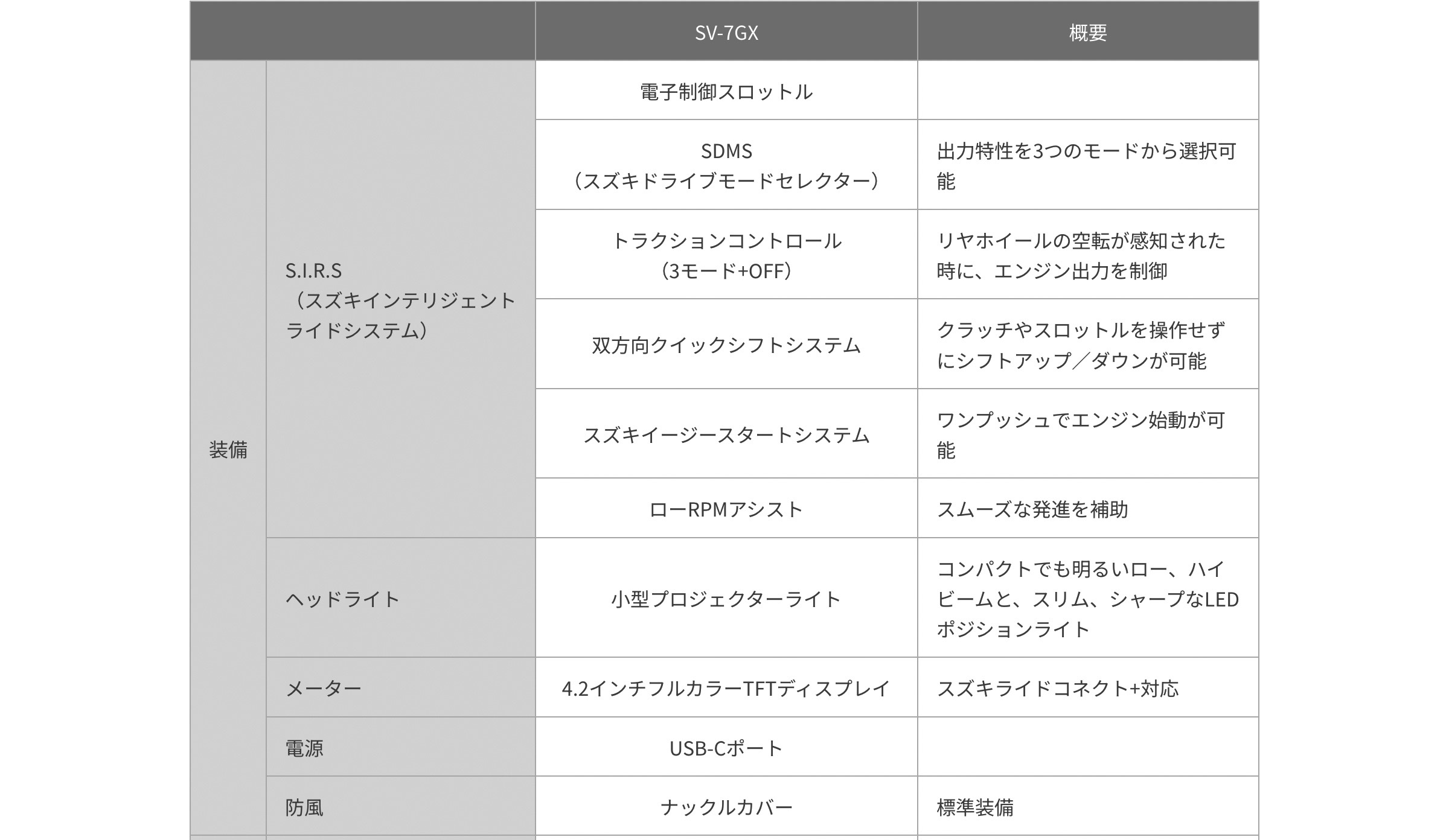 関連情報:https://www.globalsuzuki.com/motorcycle/smgs/products/2027sv-7gx/