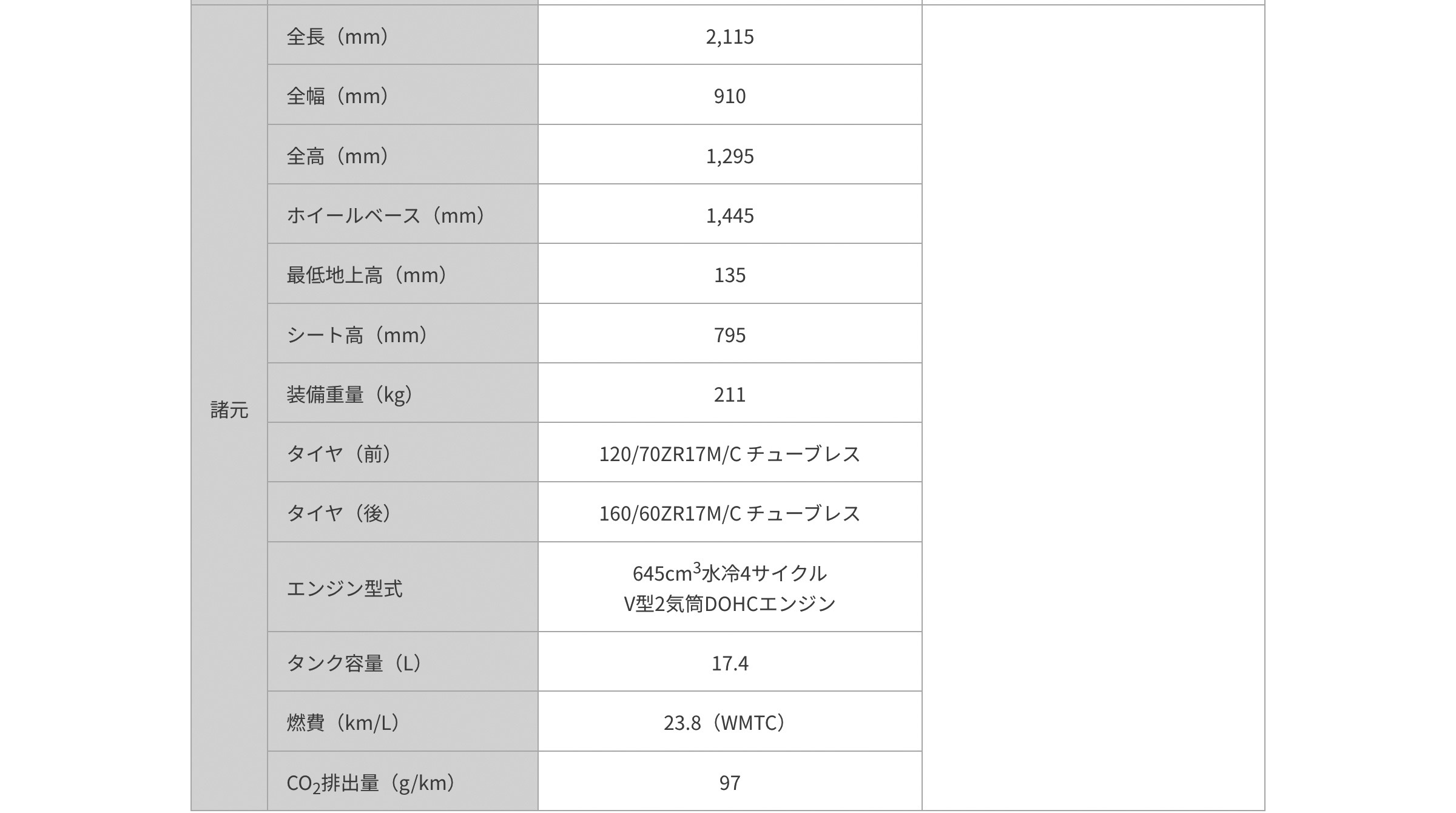 【主要諸元】(欧州仕様)