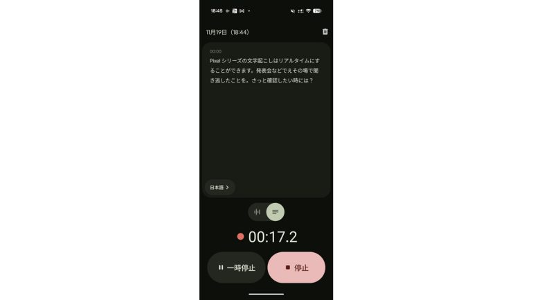 ただし、録音後に後からテキストを生成する仕組みのため、録音中に文字を確認することはできない。この点は、リアルタイムかつオンデバイスで文字起こしが可能なPixelシリーズのレコーダーアプリとの違いと言える。