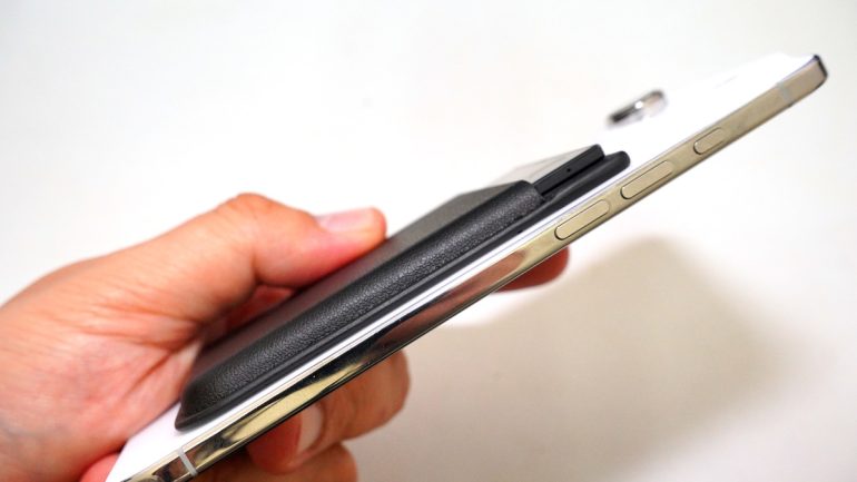 便利なのが、付属のケースがiPhoneのMagSafeや、マグネット固定が可能なQi2に対応していることだ。iPhoneシリーズやPixel 10シリーズの背面に貼り付けて持ち運べるだけでなく、そのまま通話の録音にも利用できる。元々本体が非常に薄いため、背面に貼り付けておいてもあまり邪魔にならないのがいい。