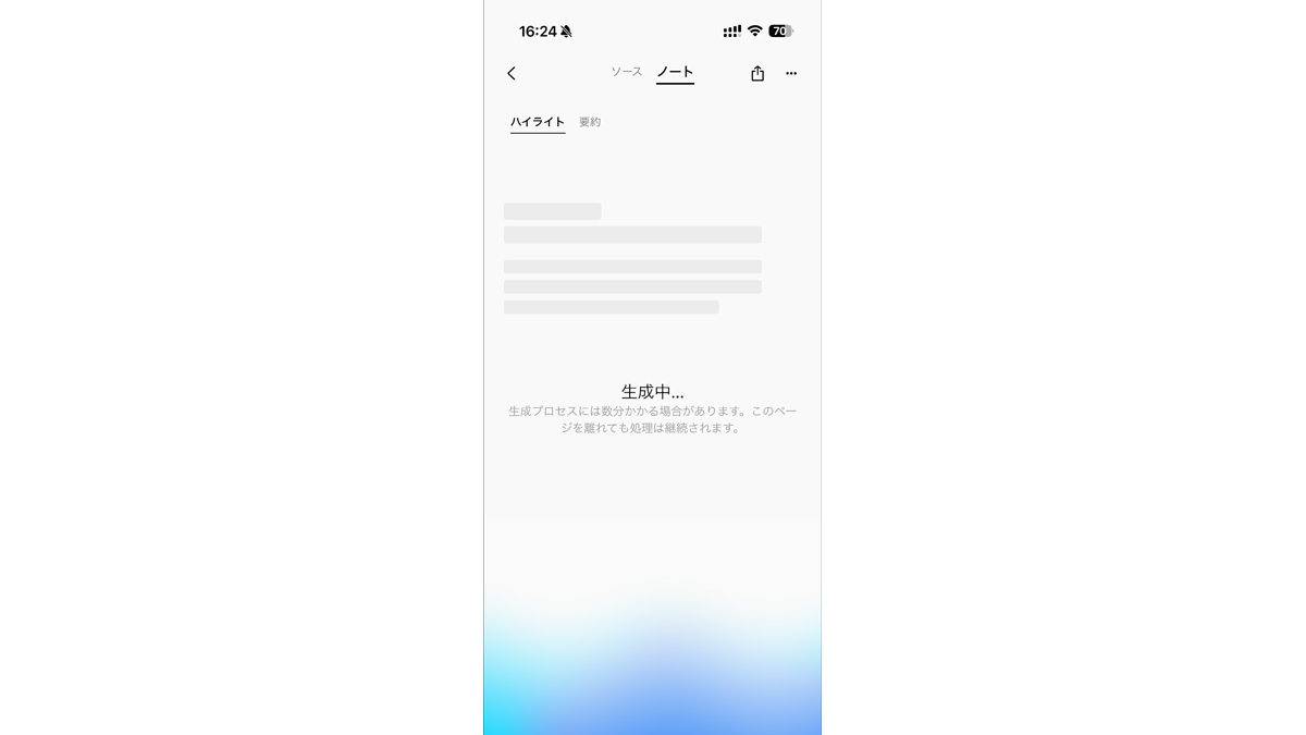 日本語で録音した音声をとりあえずテキスト化したい時には、複雑なことを考えず、自動生成を選べばいい。クリックしたあと、サーバー側で文字起こしや要約などが行われて、しばらくするとその結果が表示される。50分程度の音声で試したところ、2、3分の時間がかかったが、そこまで待たされる心配はない。