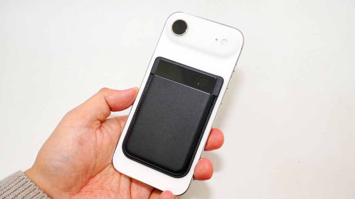 便利なのが、付属のケースがiPhoneのMagSafeや、マグネット固定が可能なQi2に対応していることだ。iPhoneシリーズやPixel 10シリーズの背面に貼り付けて持ち運べるだけでなく、そのまま通話の録音にも利用できる。元々本体が非常に薄いため、背面に貼り付けておいてもあまり邪魔にならないのがいい。