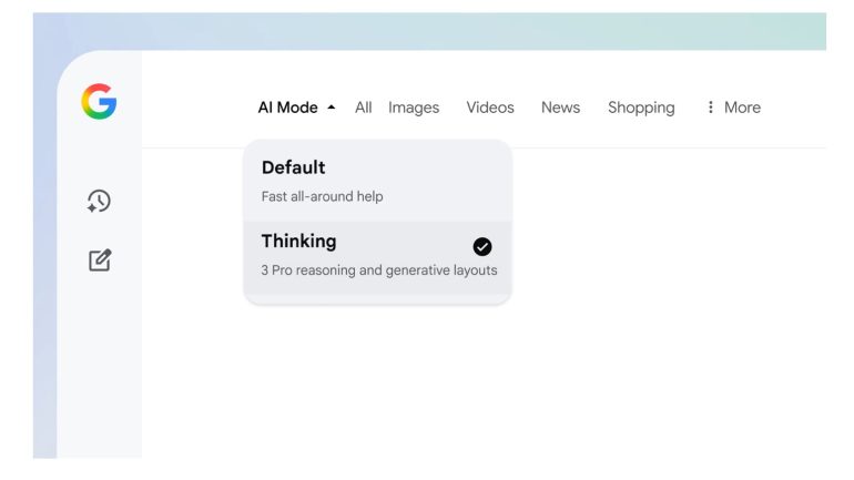 2025年11月18日より、米国のGoogle AI ProおよびUltra のユーザーは、AIモードのモデル選択メニューから「 Thinking」を選択することで、Gemini 3ファミリーの最初のモデルであるGemini 3 Proの利用が可能になった。
