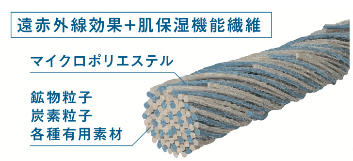 はるやまは、肌が最も水分を失う夜間に着目し、従来のリカバリーウェアのコア機能「血行促進」「疲労回復」「筋肉のコリ緩和」とは別に、「YOKUNERU」には独自の「肌保温機能繊維」を使用。