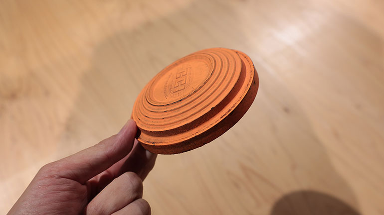 トラップに関しては、1枚のクレーにつき2発まで撃てます。クレーは陶器でできていて、使い捨てです。色は白やオレンジが一般的です。これに弾が命中すると粉々になります。放出機から1枚ずつ、全部で25枚のクレーが飛び出ますが、何枚命中したかで得点が競われます」