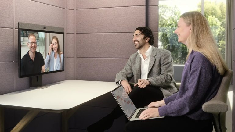 「Neat Board 32」は、32インチタッチスクリーンとカメラ・マイク・スピーカー・OSを一体化し、映像・音声のAI処理を備えたビデオ会議用デバイスで、追加機材なしで高品質なビデオ会議を実現できるので、オフィス内の「ファミレス席」といった小規模スペースでの使用に好適。「会議室が取れない」「ちょっとした打ち合わせにもビデオ会議を使いたい」という声に応えるソリューションとして活躍する。