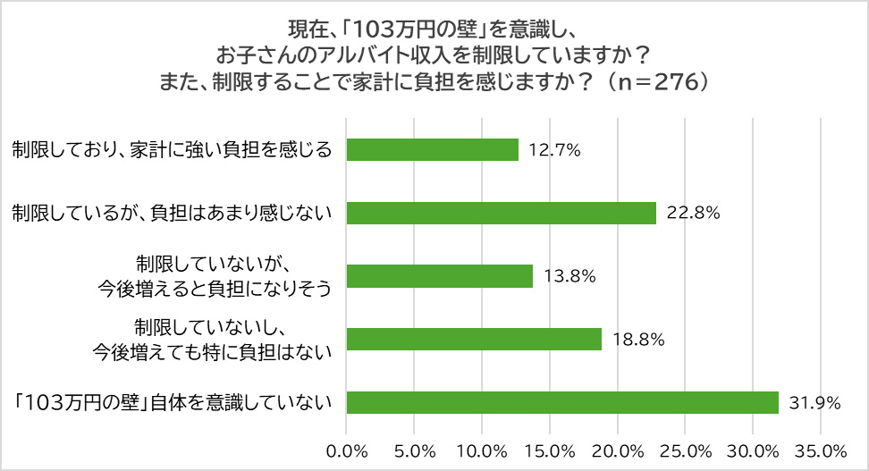 一方で、「壁を意識していない」親も約3割(31.9%)おり、所得などによる温度差も見られた。