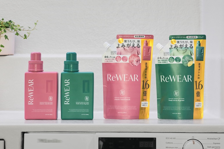 『ReWEAR』は、ダメージを受けてできた毛玉や毛羽立ちに反応するデンマーク産の酵素『セルラーゼ』を配合。繰り返し洗濯に使ううちに、毛玉や毛羽立ちが除去されていく。これまでの累計販売数は93万個を超える(詰め替え用も含む)。