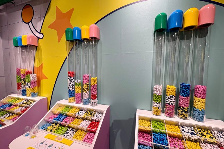 一つが「みにたま つめほーだい」(税込3828円)。『たまごっち ふぁくとり~!』限定の詰め放題体験で、「たまごっち」のミニフィギュアを専用ボトルに詰めてゆく。