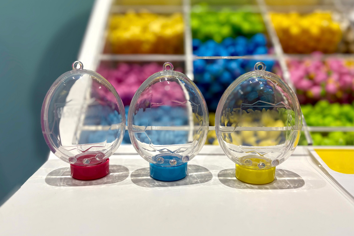 出来上がった「みにたま つめほ~だい!」は、棚やデスクなどに飾って楽しむもよし。ストラップやキーホルダーをつければぶら下げて持ち歩くこともできるから、中身を〝推し〟で統一するのもよいだろう。