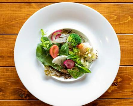 どのメニューも野菜が主役で、素材の持ち味を最大限に引き出した一皿が並ぶ。畑で触れた食材がすぐに食卓に上る体験は、まさに「畑と食卓が世界一近い」この場所ならでは。畑仕事から食卓までの流れを体験することで、心も体も心地良く自然に調和していくのを感じられるだろう。