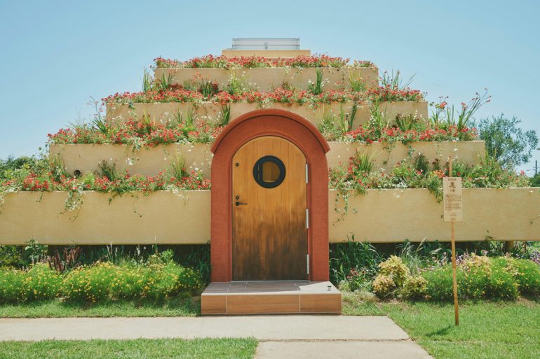 花々で覆われたピラミッド型の建物は、まるで自然がそっと抱きかかえてくれるような存在だ。
