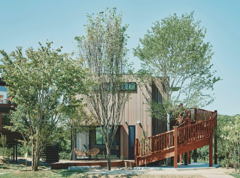 燦燦Villaを特別な場所たらしめているのは、世界的に活躍する9名の建築家が手掛けた、唯一無二の建築群である。関西万博のシンボルである「リング」をデザインした建築家・藤本壮介氏もその一人として名を連ねている。