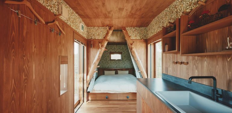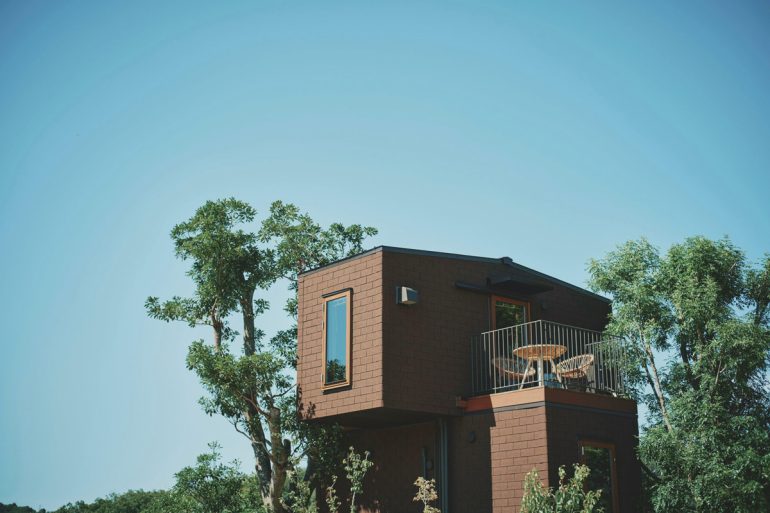大木と一体化したツリーハウスは、自然と暮らす知恵が息づく空間だ。最小限の家具で生活が完結し、木の上で過ごす感覚は非日常的でワクワクする。訪れる人は、自然と共生する新しい暮らしの形を体感できる。