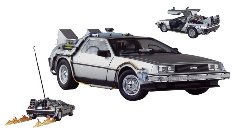 根強いファンのため、同社ではこれまでにも同映画の模型をたびたび展開してきた。写真は映画の〝Part I〟に登場する〝タイムマシン〟の新製品。特徴的な外装や内装の造形が見て取れる。タイムスリップ時に発生する炎のエフェクトパーツも付録。