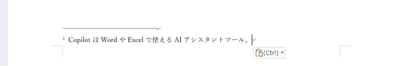 すると、このように文末の直後に脚注を入れられるようになる。脚注を入れる場所が異なるだけで、入力手順など基本的な使用方法は変わらない。