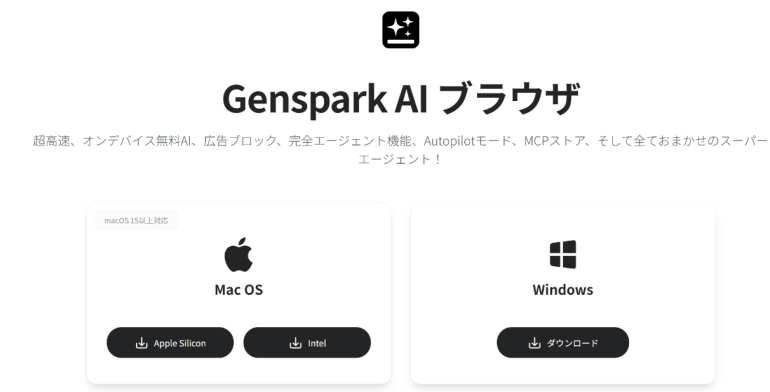Gensparkは、検索エンジンとAIアシスタントを統合した次世代型ブラウザである。検索結果をAIが分析し、複数サイトの内容をまとめた「Sparkページ」を生成する点が特徴である。