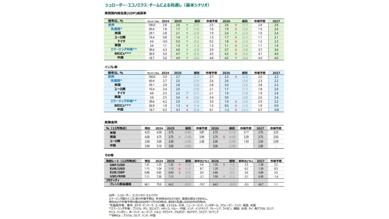シュローダー・インベストメント・マネジメントから同社エコノミスト・チームによる四半期マクロ経済見通し(2025年10-12月期)が発表された。本稿では、同社リリースをベースに、その基本シナリオや今後想定されるシナリオについて概要を紹介する。