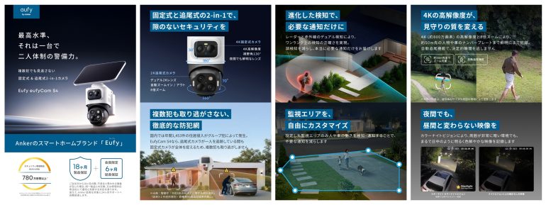 アンカー・ジャパン、スマートホームブランド「Eufy」から、屋外用セキュリティカメラ「Eufy eufyCam S4」を発売した。価格は39,990円。
