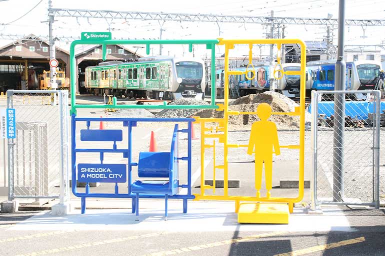 今まではNTT西日本株式会社静岡支店による実際に使える公衆電話、サントリービバレッジソリューション株式会社による自動販売機とベンチなどさまざまなプラモニュメントが設置されています」