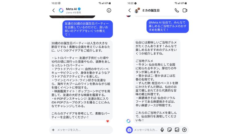 今回の段階的なローンチを経て、日本の利用者は、Meta AIを使って新たなアイデアを生み出したり、コンテンツを作成・アニメーション化したり、関心のあるテーマを深掘りしたり、単純に笑いを共有することが可能になる。