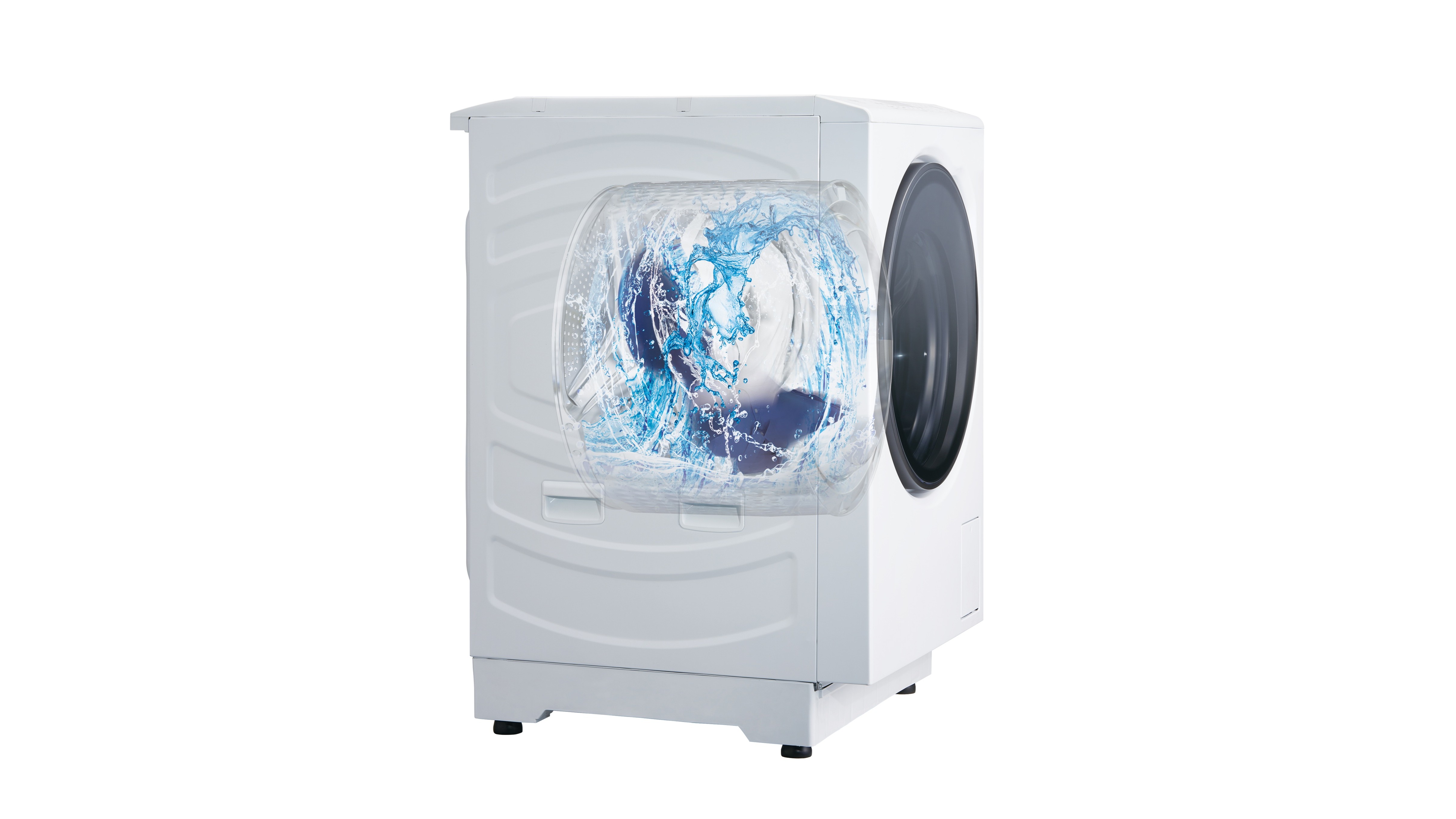 「まっ直ぐドラム」は、AQUAのコインランドリー用機器と同じ水平のドラム構造と技術を採用することで、タテ型洗濯機と同等程度のスペースに置けるコンパクトサイズと大容量、高い洗浄性能を実現したドラム式洗濯乾燥機。