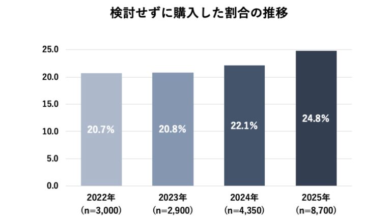 2025年の定量調査結果では、引き続きリスクヘッジ購買およびスムーズな購買行動へのシフトが見られつつ、購買における「検討」の捉え方に変化の兆しもあった。