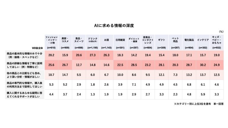 加えて、ライブコマースやメタバースといった次世代技術への関心も増加傾向にあり、AIサービスについては「必要最低限の情報を手軽に得たい」というニーズが明らかになった。