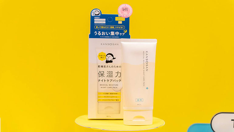 「乾燥さん」シリーズから登場した、2つの有効成分で寝ている間に集中ケアできる「薬用ナイトケアパック」も、医薬部外品。メラニンの生成を抑え、シミ・そばかすを防ぐ美白の有効成分「ナイアシンアミド」と、肌荒れ予防の有効成分「パンテノール(D-パントテニルアルコール)」が配合されている。