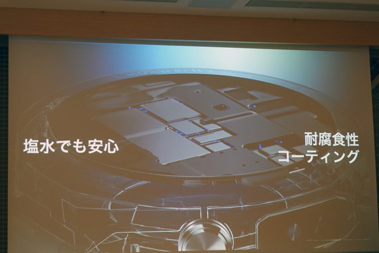 水中では水深10mで1気圧ずつ水圧が増すので、水深150mでは約16気圧となり、通常の16倍の圧力がかかる。そのため3層の防水フィルム構造を採用。
