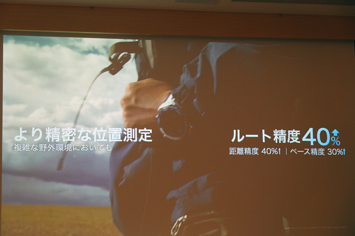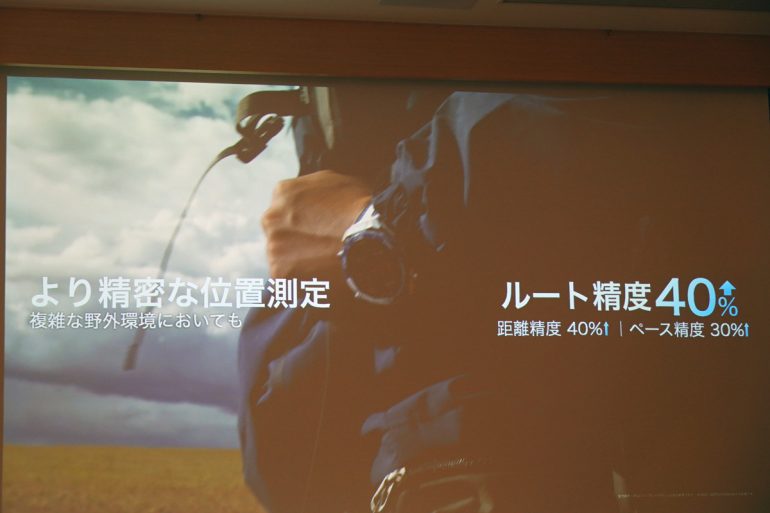 例えばゴルフでは、国内外1万7000以上のゴルフ場マップが利用可能。コースの見たいところをタッチすれば、拡大・縮小が自在にできる。トレイルランニングや登山では、ルートをインポートして、オフラインの環境で等高線付きのマップが閲覧できる。常に衛星を追跡するヒマワリ型アンテナシステムの進化により、ルート精度が前モデルに比べて40%も向上。精密な位置測定が可能になり、仮に道をはずれた場合にも、元の道に戻ることができる。