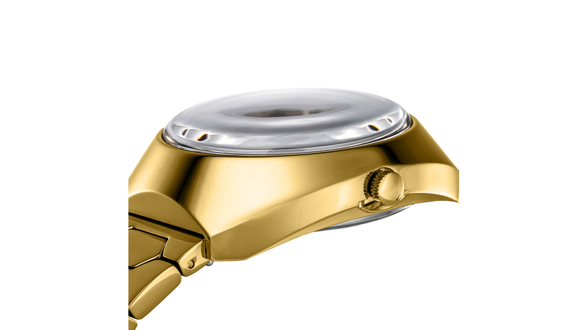 さらに、台形の日付表示窓、ほんのりカーブを描くドーム型風防も当時のデザインを忠実に再現した。
