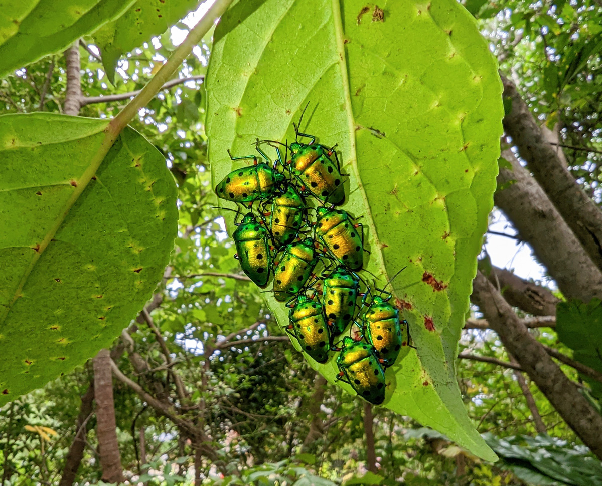 一方で、暖かいとはいえ、すべての昆虫が活動しているわけではありません。中には、活動せずにじっとしている種類も多くいます。例えば、宝石のように美しいナナホシキンカメムシは、集団で葉の裏に集まり、冬を越します。暖かい地域ならではの昆虫たちが越冬する姿も、冬の沖縄の見どころです。