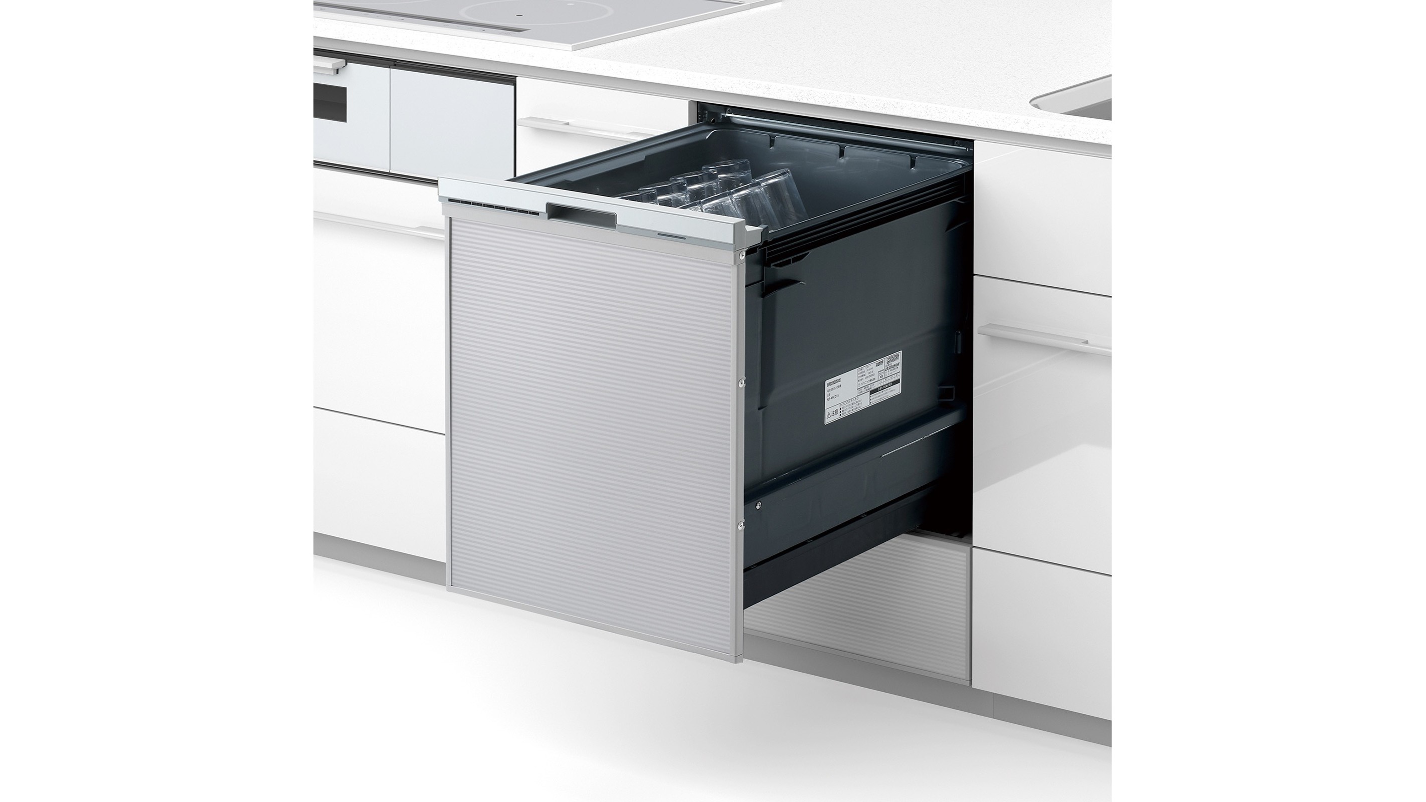 いずれも、プルオープンタイプのビルトイン食器洗い乾燥機。独自の洗浄システムを新搭載しているのが特長で、ヒーター搭載の高出力インバータ洗浄ポンプと排水専用ポンプ、水量センサーを採用し、水圧や水温、排水、水量を最適コントロールするプログラムを構築することで、業界No.1のスピード洗浄を実現。