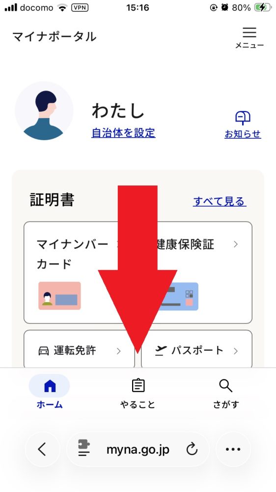 マイナンバーカードアプリから(もしくはパソコンからブラウザでマイナポータルにアクセス)し、マイナンバーカードを読み取ってログインする