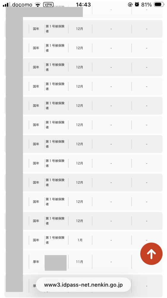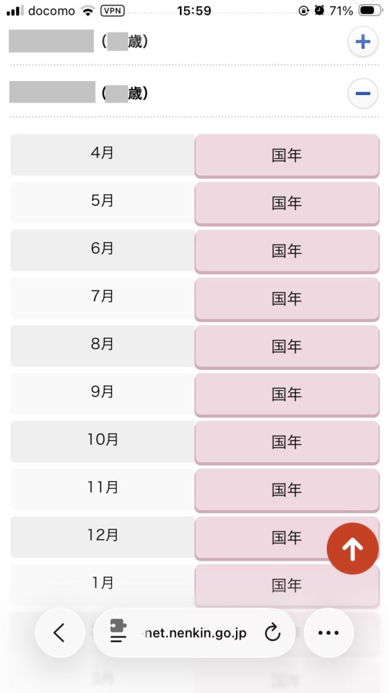 ⑤年金記録の「月別」画面