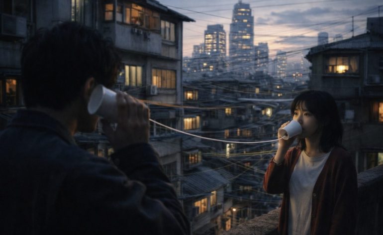 「この糸、明日の朝には回収されるのよ」 「うん」 「回収車の人は、私たちの会話の振動が残った糸を巻き取るのかな」 「たぶん」 「じゃあ、この会話も回収されるんだ」 「リサイクルされて、誰かの糸になる」 「ねえ、タクヤ。糸電話は嘘をつかないって、本当だと思う?」 「嘘をつかないんじゃなくて、つけないんだと思う」 「どういうこと?」 「糸で繋がってると、全部伝わっちゃうから」「じゃあ、私がずっと待ってたことも伝わってた?」
