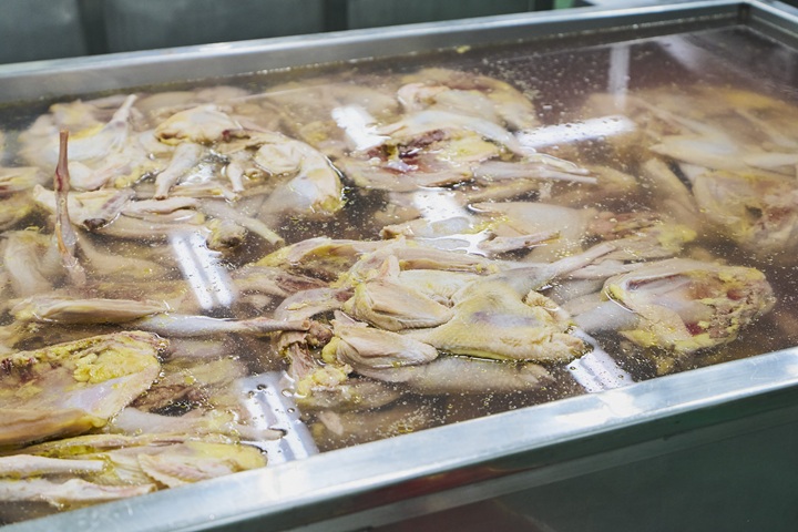 おいしいコンソメスープを作るために最も重要な工程は、素材を長時間鍋で煮込むということ。ひとつの鍋で肉と野菜を長時間煮込むことで、肉や野菜のうま味やコクが混ざり合いおいしさが生まれる。