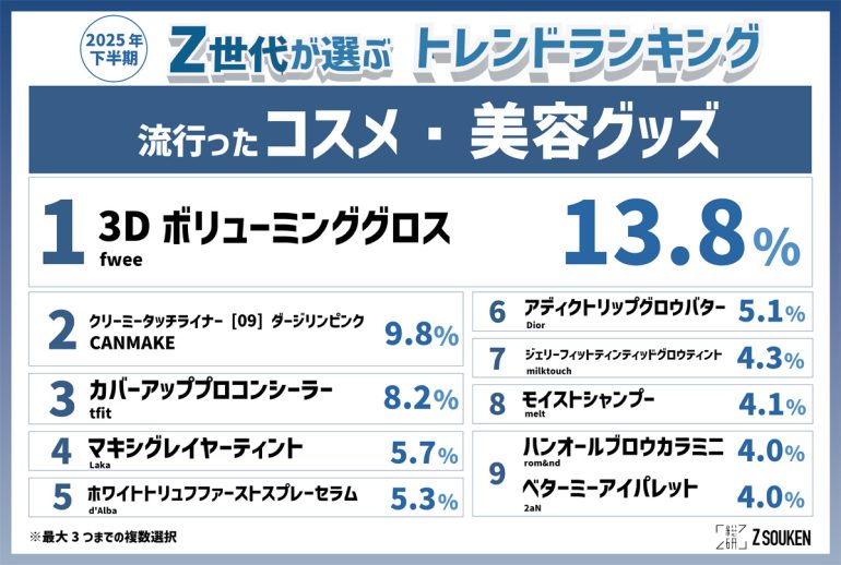 「Z総研」は、Nom de plume(ノンデプルーム )読者でありトレンドに敏感なZ世代女子を中心としたZ総研独自のリアルZ世代コミュニティ所属のメンバーへ2025年下半期のトレンドの調査を実施。その結果を「Z総研2025年下半期トレンドランキング」として発表した。