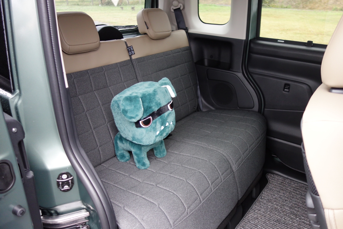 ステップ高400mm(4WD/2WDは370mm)、幅650mm×高1235mmのパワースライドドアから、室内高1400mmもの後席に乗り込み、着座すれば、頭上に250mm、膝周りに最大400mmほどのスペースがあり、フラットフロアかつヒール段差(フロアからシート座面までの高さ)も高いため、膝が上がらない椅子感覚のゆったりとした自然な姿勢で着座することができる。