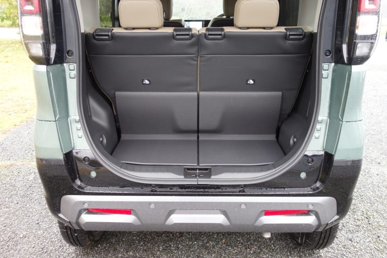 タイヤはNAエンジンモデルの155/65R14サイズに対してターボモデルは165/60R15サイズとなり、最小回転半径はそれぞれ4.5m、4.9mだ。なお、軽SUV、デリカ一族らしく、最低地上高はスーパーハイト系軽自動車トップの160mmとなる。