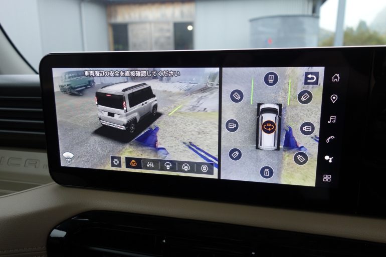 ここで「DERIMARU Package」の仕様について説明すると、他グレードではオプションとなるGoogle搭載インフォテイメントシステム(12.3インチHDディスプレー)、ビルトインETC2.0ユニット、3Dマルチアラウンドビューモニター、デジタルミラー、前後ドライブレコーダーを標準装備。