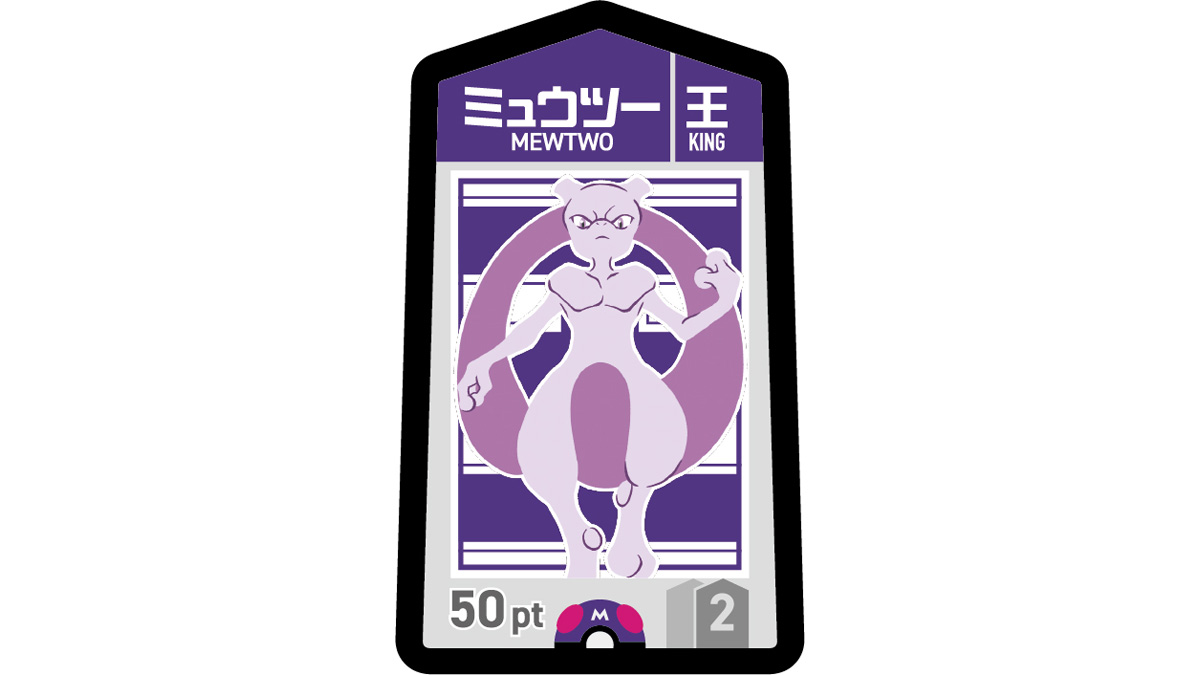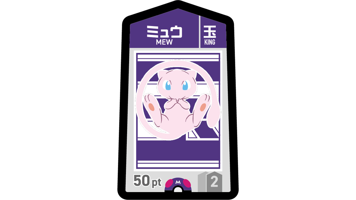 ゲームで使うコマは、「ミュウツー」と「ミュウ」は同じ扱いで全8種類。コマによって枚数と点数が異なり、誰が何を持っていて、次は何を出すかなどの読みと戦略が重要になる。相手が出したコマと同じコマであれば受けられるが、「ミュウツー(ミュウ)」には特殊ルールがあるので、これをうまく使うことも攻略ポイントだ。