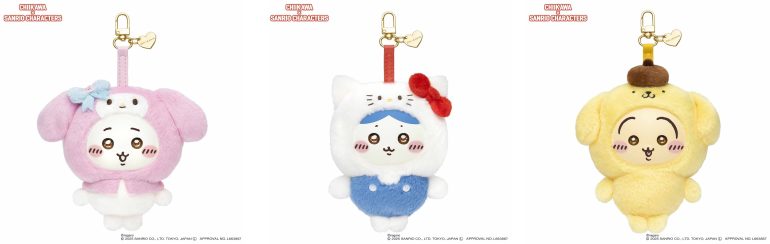 本年10月に同社よりローンチしたアクセサリーぬいぐるみブランド「Kiramekko(きらめっこ)」からも、待望の「ちいかわ×サンリオキャラクターズ」コラボ商品が登場。キラキラ輝く目を持つちいかわたちが、サンリオキャラクターズの着ぐるみを身にまとった、コラボならではの愛らしいデザインに仕上がっている。