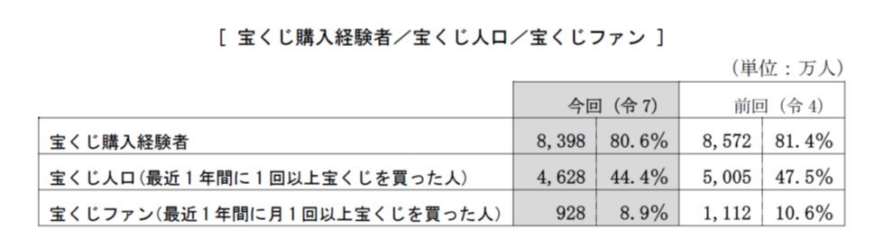 宝くじ購入経験率は 80.6%、推計人口約 8,398 万人