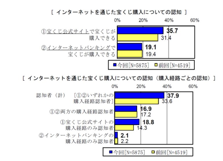 宝くじ公式サイトとインターネットバンキングのいずれかで宝くじが購入できることについて具体的な購入方法や特徴の認知率 37.9%
